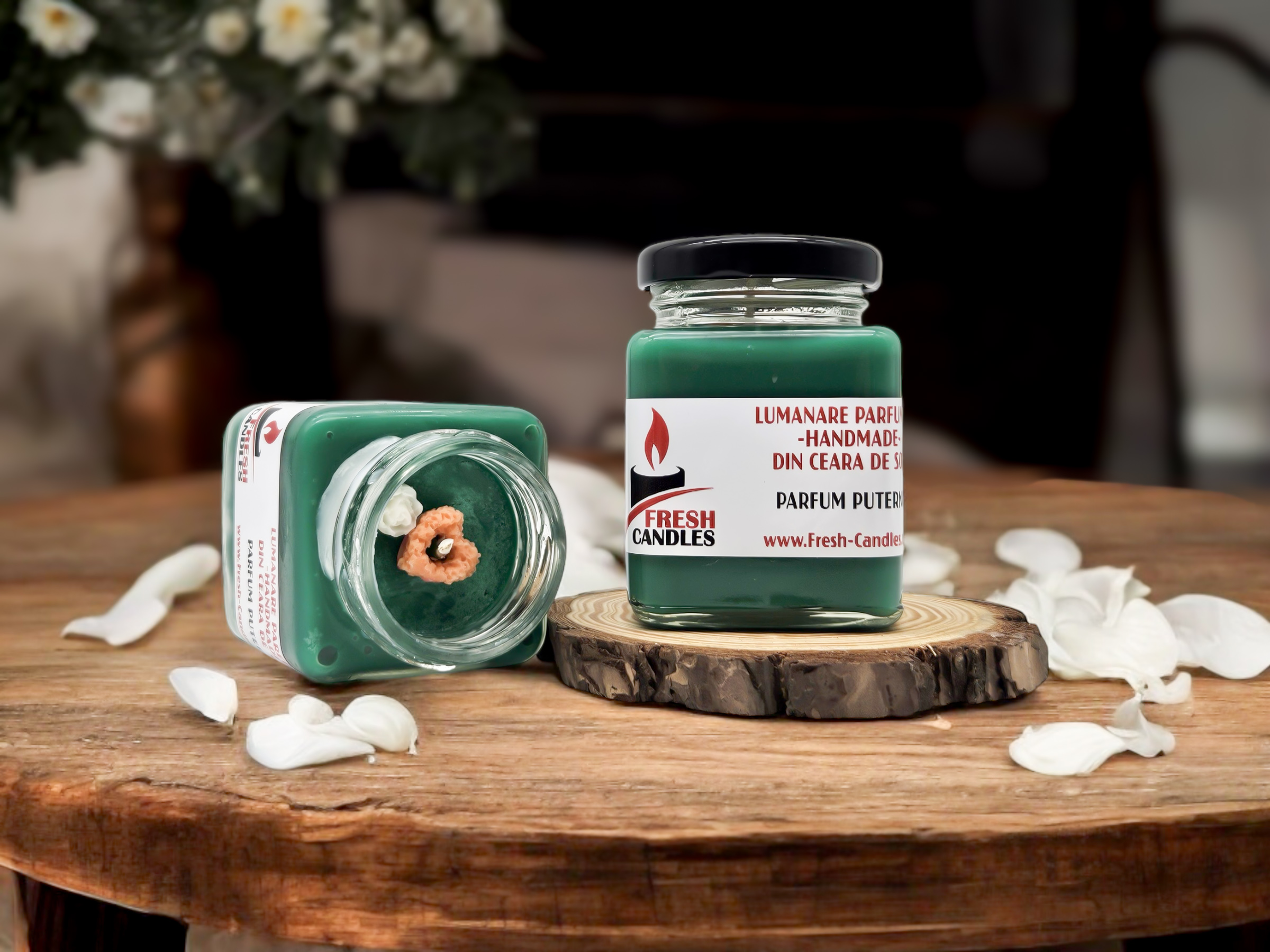 Lumânările sunt turnate manual în România, iar conținutul lor este vegan. Folosim doar ceară din soia și fitile din bumbac, iar parfumurile din lumânări sunt premium se folosesc și în industria cosmetică, ele fiind certificate IFRA. Recipientele pe care le folosim sunt special concepute pentru industria lumanarilor.